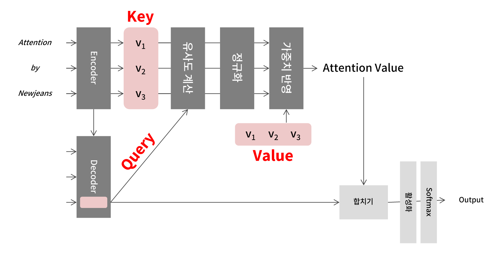- Query: t 시점 Decoder 셀에서의 은닉 상태(hidden state)