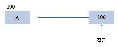 만약 var이라는 변수에 'A'가 저장되어 있다면 var이라는 변수명을 통해 데이터에 접근할 수 있다. 하지만 var 대신 다른 변수에 주소값을 저장하고 사용할 수도 있다.