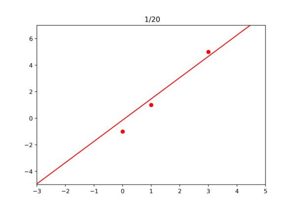 우리는 빨간 직선과 같이 임의의 일차 함수를 만들고 경사 하강법을 이용해 데이터와의 오차를 줄여나갈 것이다. 최종적으로 검정 점선과 같이 데이터에 대해 오차가 작아지도록 만드는 것이 목표이다.