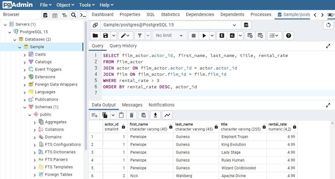 ORDER BY를 통해 정렬을 수행한다. 생략하거나 ASC를 통해 오름차순 정렬이 가능하다. DESC는 내림차순 정렬을 수행한다.