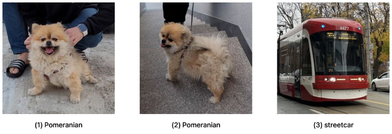모델을 거친 벡터 간 Euclidean 거리가 가깝다면, 두 이미지가 비슷하다고 할 수 있다. 참고로 이미지 픽셀 간 L2 거리가 가까운 것은 아니다.