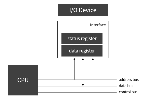 CPU는 I/O 장치에 직접 접근하지 않고 제어기(controller, interface)를 통해 접근한다.