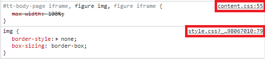 'content.css'에 작성된 코드는 덮어써야 한다. 개발자 도구로 봤을 때 있는데, 티스토리 편집기에 안 보이는 CSS 코드가 있다. 이런 스타일은 content.css에 작성된 경우다. 우리가 편집하는 파일은 style.css다.