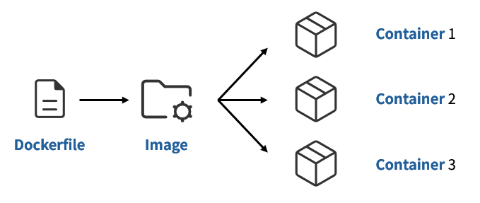 - 이미지: 라이브러리 등 필요한 설정이 완료된 템플릿. 한 번 빌드하면 수정할 수 없으며, 읽기만 가능하다.