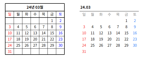 | yyyy-mm-dd (기본) | 2024-01-03 |