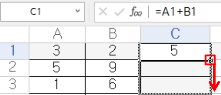 함수를 입력하고 셀 우측 하단을 드래그하면 함수가 자동완성된다.