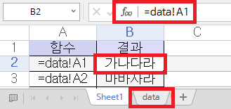 셀을 참조할 때 셀 번호를 적는다. 예를 들어 =A2는 A2에 저장된 값을 참조한다.