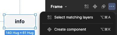 요소를 선택하고 Frame 옆에 있는 점에서 Create component를 클릭해 등록할 수 있다.
