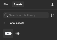 등록된 컴포넌트는 좌측 Assets에서 조회 및 삽입할 수 있다.