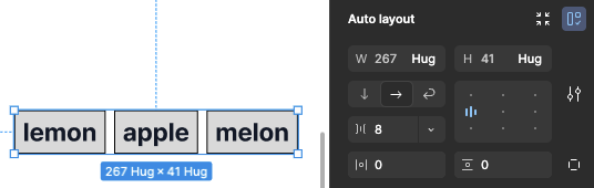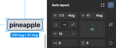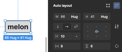 W(너비)와 H(높이)를 Hug로 설정해주고 아래에 padding 값을 입력해준다. 위 예시는 8 6으로 입력했다.