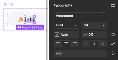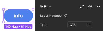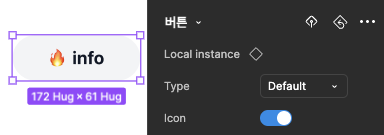 버튼에 들어가는 텍스트도 프로퍼티로 등록해보자. Typography에 마름모 아이콘이 생긴 걸 볼 수 있다. 이 버튼을 이용하면 텍스트도 변경할 수 있는 프로퍼티로 등록된다.