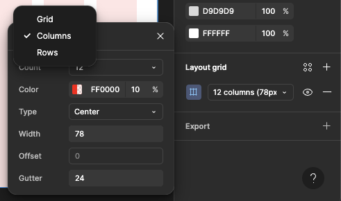 Layout grid를 통해 3종류의 가이드라인을 잡을 수 있다. 자세한 설정 값은 designbase/grid-calculator를 참고하자.