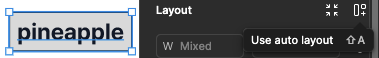 요소들을 모두 선택해주면 Layout 옆에 버튼이 생긴다. 마우스를 올리면 "Use auto layout"이라는 문구가 뜬다. 이 버튼을 클릭하면 오토 레이아웃이 걸린다.