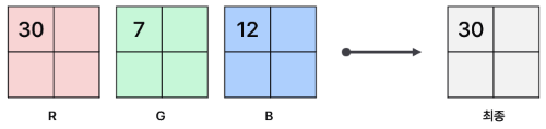 컬러 이미지는 각 채널에 대해 gradient를 구한다. 각 픽셀에 대해 3개 채널의 gradient 중 norm(크기)이 가장 큰 벡터를 최종 gradient로 채택한다. 이는 각 채널(색상) 중 가장 강한 특징을 gradient(변화율)로 사용하기 위해서다.