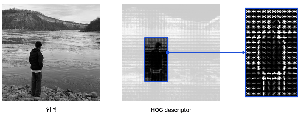 계산된 descriptor는 SVM에 입력되기 전 detection window로 조각조각 나누어진다.