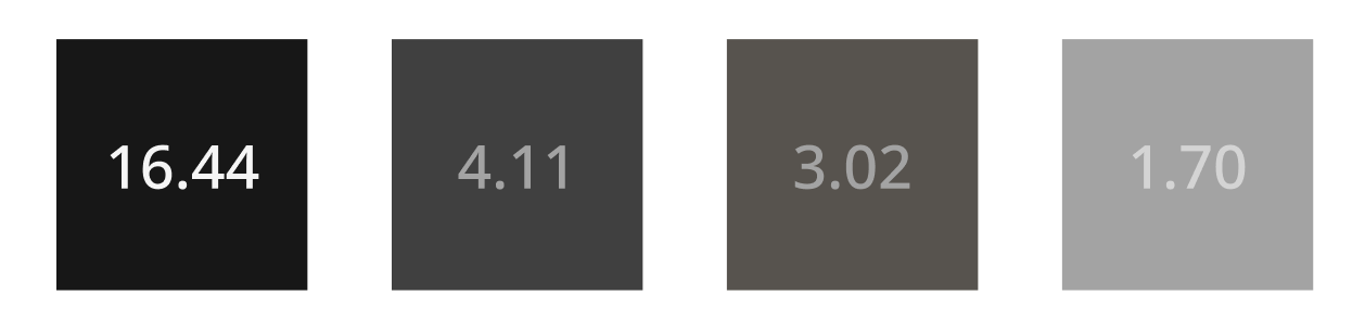 웹 콘텐츠 접근성 가이드(WCAG)는 일반 텍스트에 대해 4.5:1, 큰 텍스트에 대해 3:1 이상의 명암비를 권장한다. 대비되는 정도가 작다면 정보 인식에 어려움이 있을 수 있다.