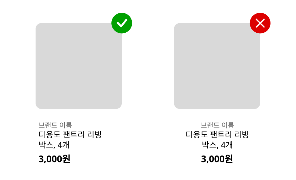보다시피 계층 구조를 나누면 정보를 쉽게 파악할 수 있다. 계층 구조를 나누는 일은 정보 전달에서 매우 중요하다. 또한 여백을 줌으로써 정보를 그룹핑할 수 있다. 위 예시는 "이미지", "브랜드+상품명", "가격" 3가지 그룹으로 정보를 보여주고 있다.