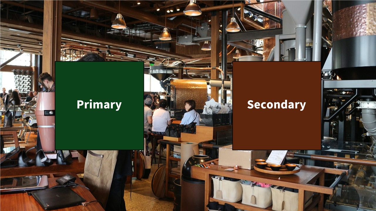 기본색:보조색:중립색 비율은 5:25:70가 적당하다고 이야기한다. 대표적인 예로 스타벅스 매장이 있다.